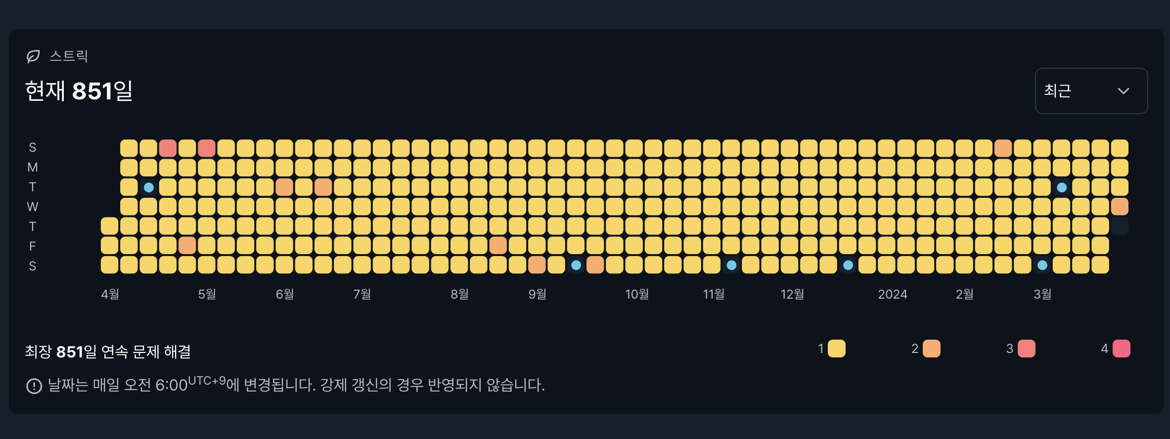 나는 수능 이후부터 지금까지 백준 스트릭을 2년 이상 유지하고 있다. 물론 처음에는 알고리즘 실력을 쌓겠다는 목표로 시작했으나, 지금은 본말이 전도되어 스트릭을 쌓는 것 자체에 더 재미를 느끼고 있다. (당연히 실력은 제자리걸음이다.)
