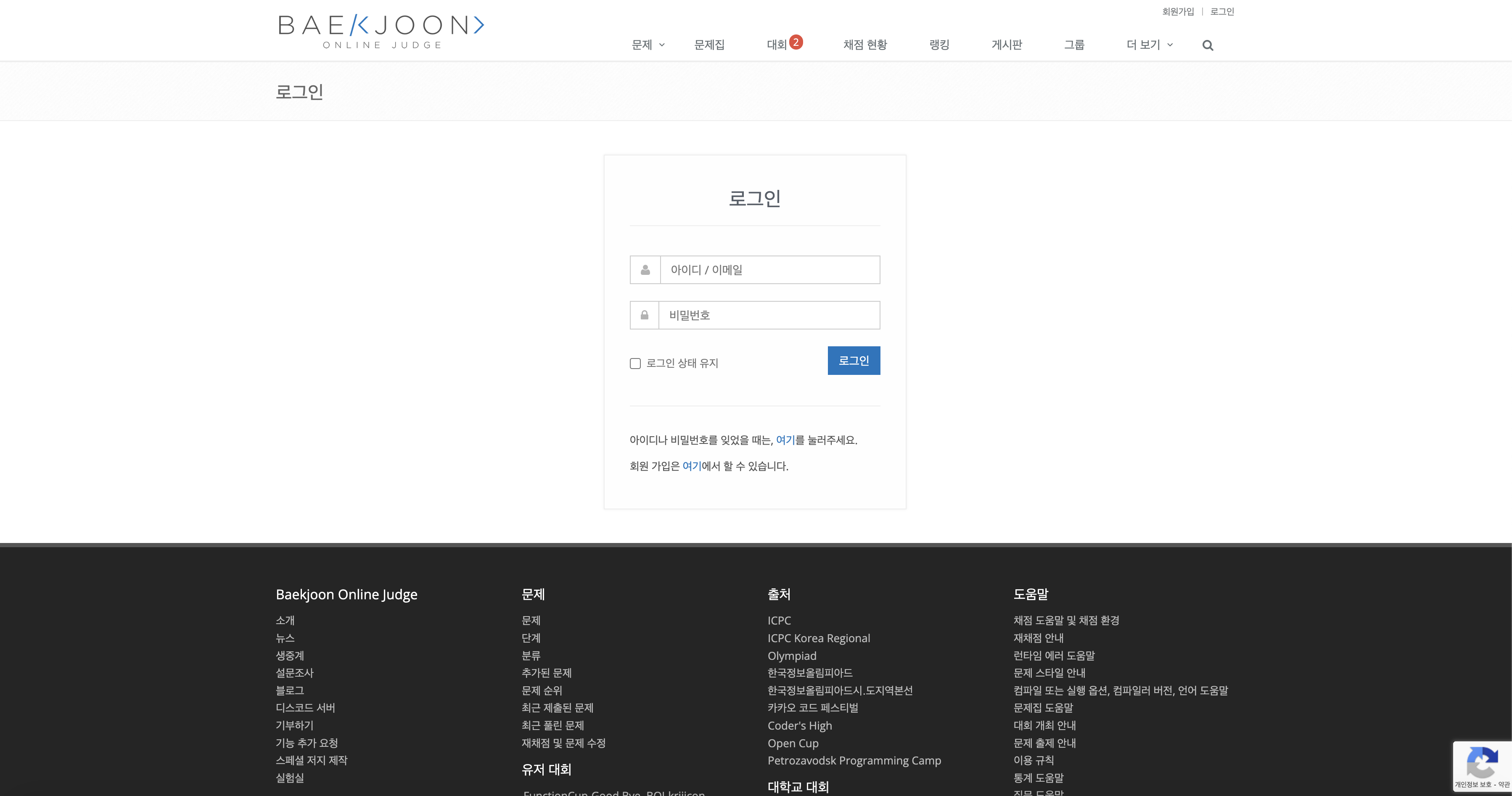 여기서 문제가 생겼다. 백준 로그인 페이지에 캡차(reCAPTCHA v2 Invisible)가 적용되어 있어 간헐적으로 로그인에 실패하는 상황이 발생했다.
