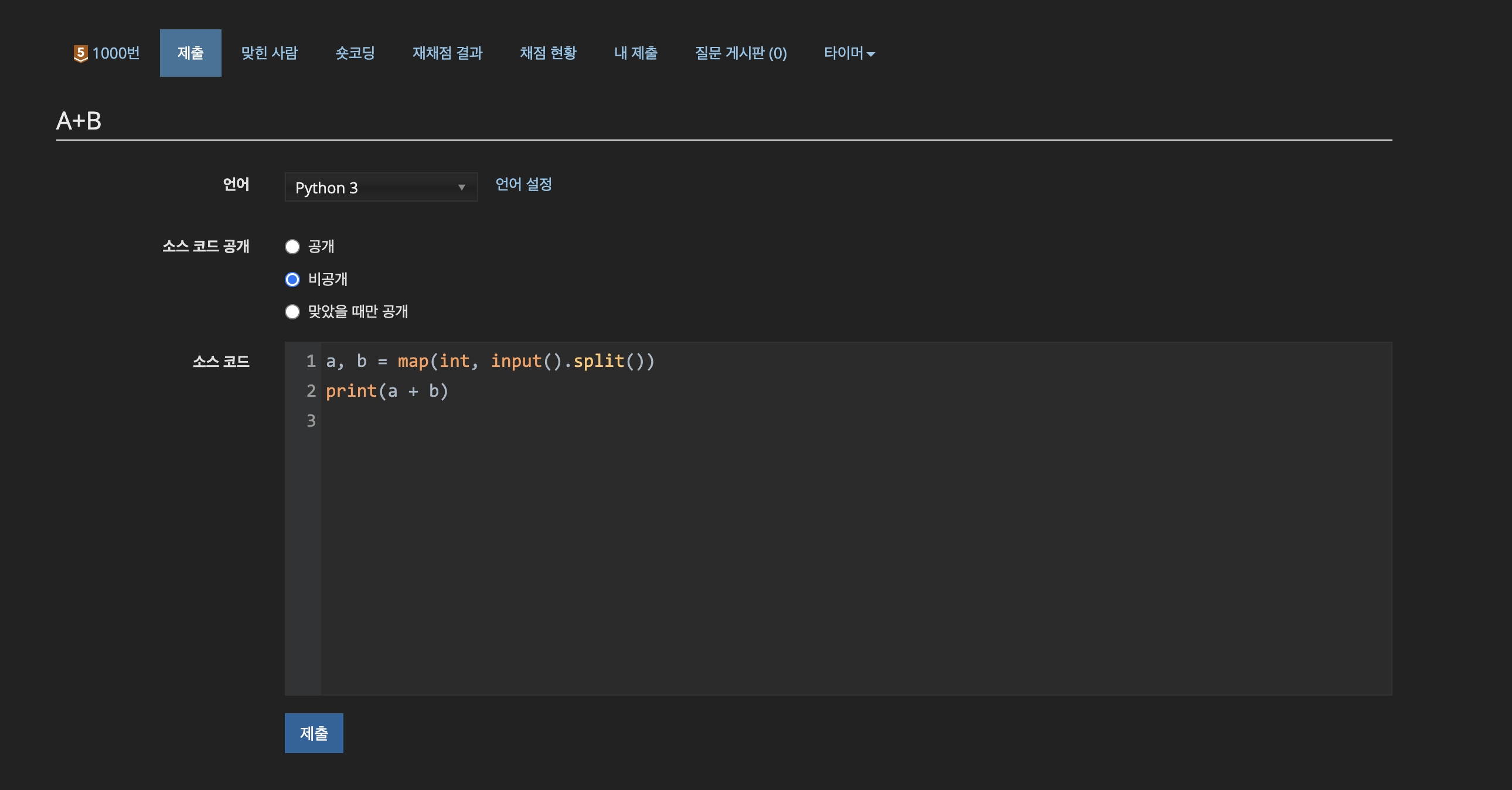 - 제출 창으로 이동해 문제를 제출한다.